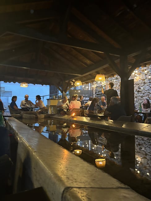 10/10Lovely restaurant with tables set up outside around the old lavoir. Great service. Small but very good and imaginative menu. A very enjoyable experience.