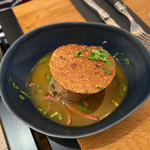 10/10Very good food - just the right level of creativity / originality. The beef tartare with bone marrow and the tataki were particularly tasty. Good choice of wine as well, although several bottles were not available. Service was nice - although a bit rushed due to understaffing.