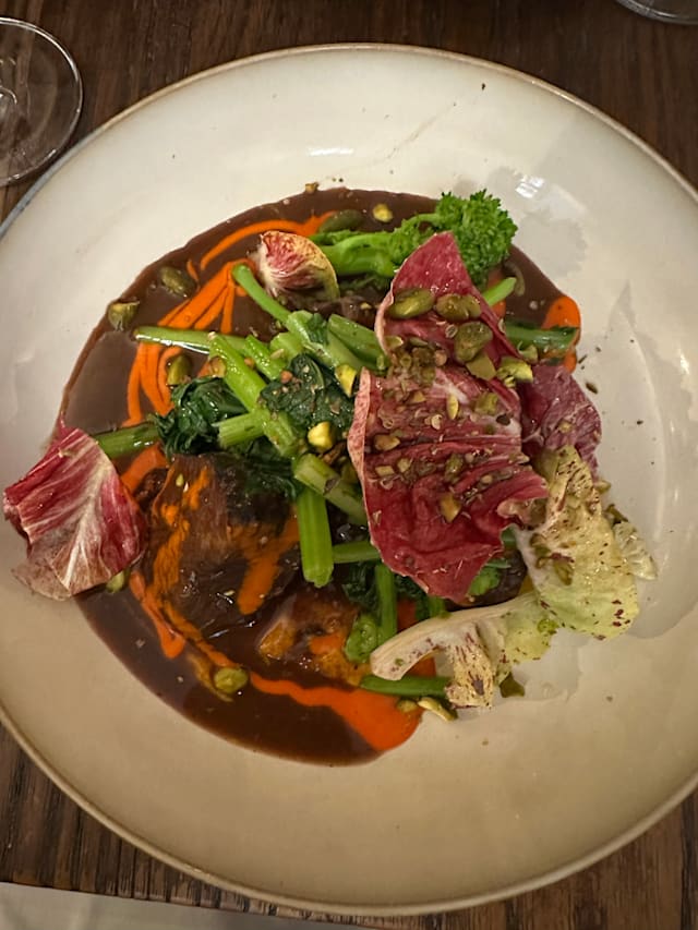 10/10Excellent place, with an interesting mix of dishes, small and medium, varied tastes and textures, with of course an amazing choice of wines very reasonably priced. Have a go.