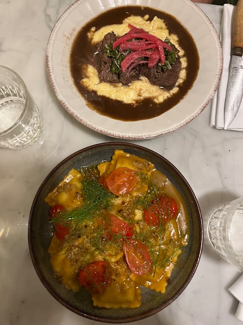 8/10We had a good experience overall, which was dampened by exceptionally slow service. The food was mostly great, especially the slow-cooked beef. Unfortunately, the ravioli was on the blander side but it wasn’t bad. Our waiter seemed overworked, but he was mostly nice and as helpful as he could be, given his workload.