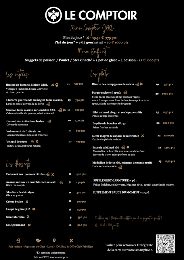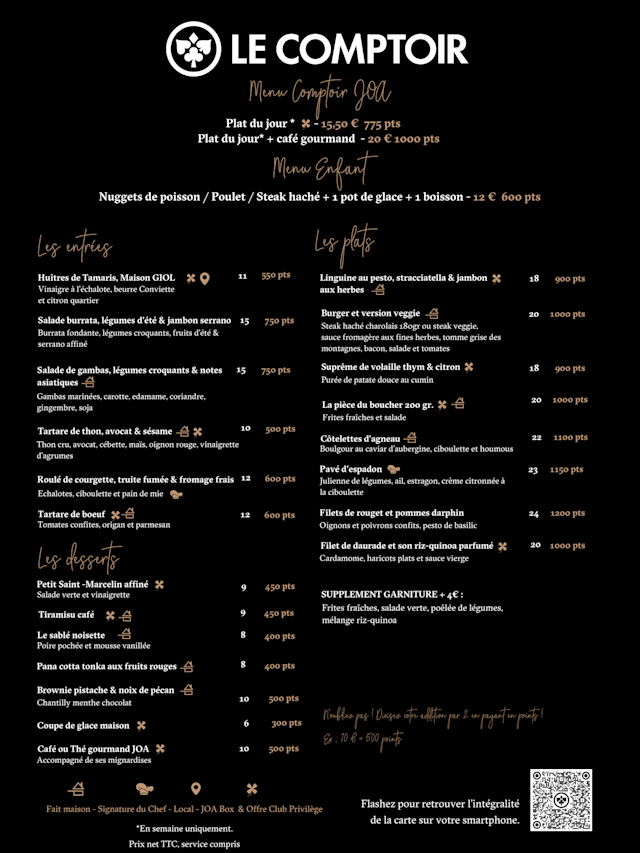 AU BORD DE L'EAU - Si vous voulez déjeuner dans un cadre unique, le restaurant Le Comptoir Joa, situé à La Seyne-sur-Mer, vous accueille dans un endroit tendance avec une vue imprenable sur la mer. PLATS ORIGINAUX - C'est une cuisine moderne qui vous attend ici. Tout est fait maison avec des pro...