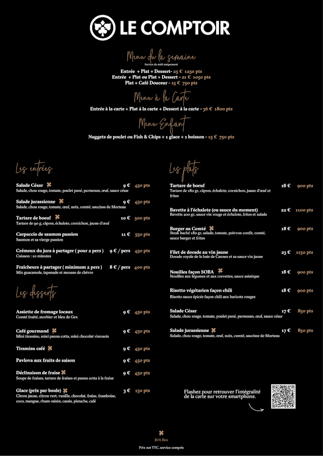 Le Comptoir JOA - Saint-Laurent-en-Grandvaux is rated 8.8/10.TheFork users have rated accordingly in the following categories: