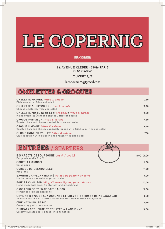 9.5/10Great brasserie on Ave Kléber. All the classic French fare, well prepared, high quality and reasonable prices. Enjoyable!