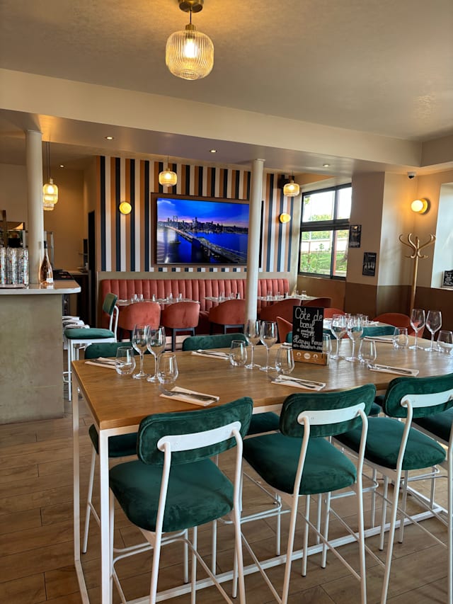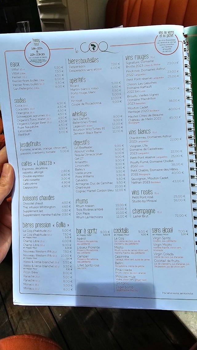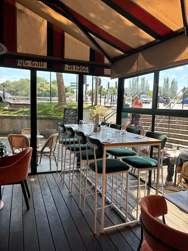 7/10Lovely ambiance, slightly noisy as it's near the main road. The food was just OK. Interesting menu but poor presentation of the concept. The entrée cabillaud was frozen, you could still taste the ice in it.