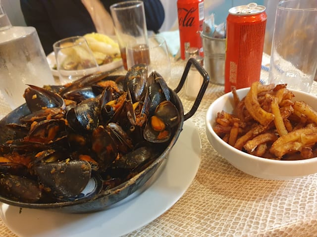 8/10We were served by Kevin who was very amusing & spoke a little English Food was delicious except the frites which were over cooked & soggy We were offered a free digestif Lemoncillo & Baileys Delighted when the bill arrived with 30% off all the food we had eaten pleasant suprise We would return Wine pricey for a demi pitcher but excellent wines
