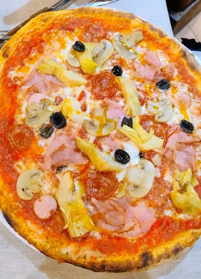 (Mozzarella, prosciutto crudo, burrata, pomodorini, scaglie di grana, rucola)
