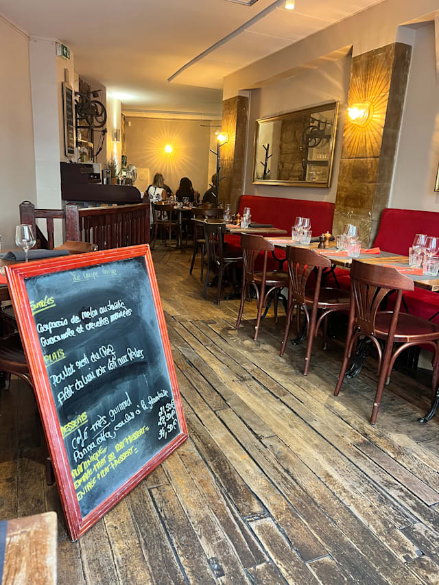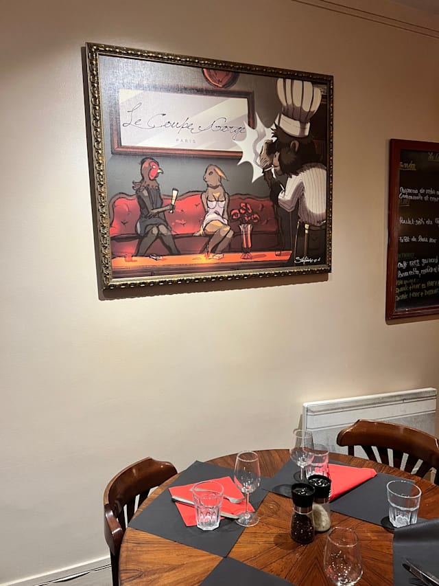 10/10We spent a week in Paris and ate here twice. The food was great. Make sure you get Nathalie as your server. She made great recommendations as to what to order and what wines we should pair with our meal. We will definitely return to Le Coupe Gorge on our next visit to Paris.