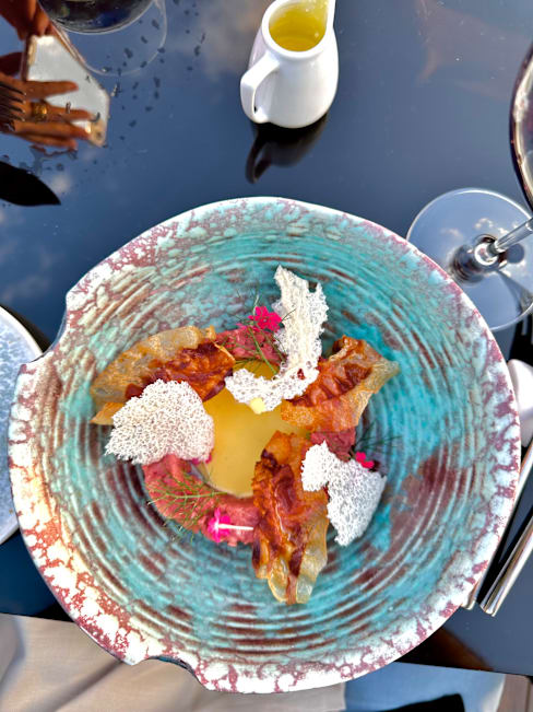 9/10Definitely overpriced. We did the 7 course option. Some courses were delicious, some not my favorite. Beautiful view, awesome service, food not as good as the presentation.