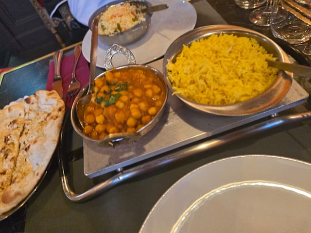 7/10Honest with great food and opportunity on atmosphere and decoration: Not among the fancy overpriced restaurants in Geneva. This said and based on a friends recommendation and good reviews, we were hoping at great quality food. I initially wanted to go for some of the South Indian specialties ... which unfortunately where no longer available. We were late at 9:15pm so no critique here, I prefer out of stocks vs. non fresh overstock. Thus we let us guide to another rice combo dish (one chicken and one lamb). The taste was a great and we really liked it ... I had asked for a bit more yogurt which unfortunately took a bit too long to come so that we already had finished the dish. But SUPER friendly! Desert was home made and with great taste. Net, a very nice experience with opportunities especially on the atmosphere. Just consider giving some of the decoration a bit of freshness and consider some update on the decoration of the aquarium... it could be a true "eye catcher".