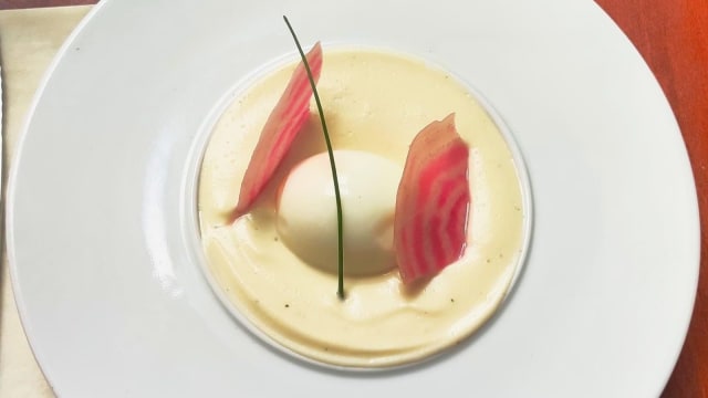Crémeux de champignons, œuf poché fermier et chips de parmesan