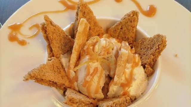 La tarte aux noix du dauphinoix (biscuit, caramel aux noix de grenoble, chantilly à la noix, glace artisanale vanille des frères amoré)