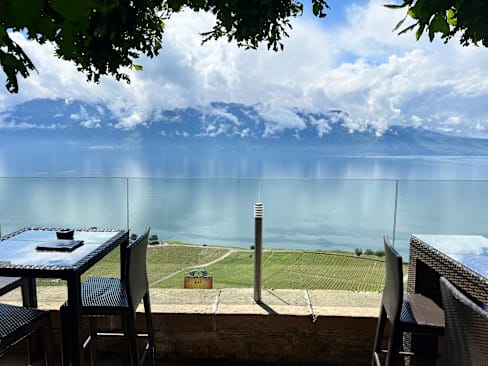 10/10An amazing location overlooking vineyards and Lac Leman behind. Great atmosphere, cosy with very attentive staff. The food was delicious, the lentils and the caneloni especially delicious!