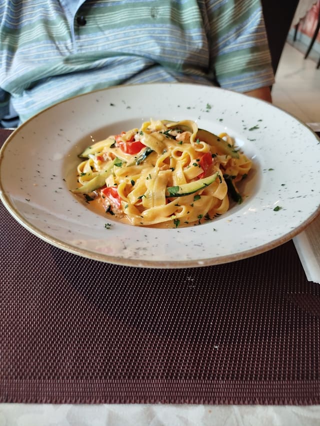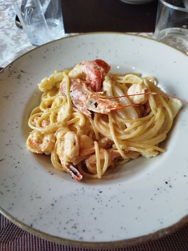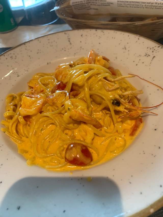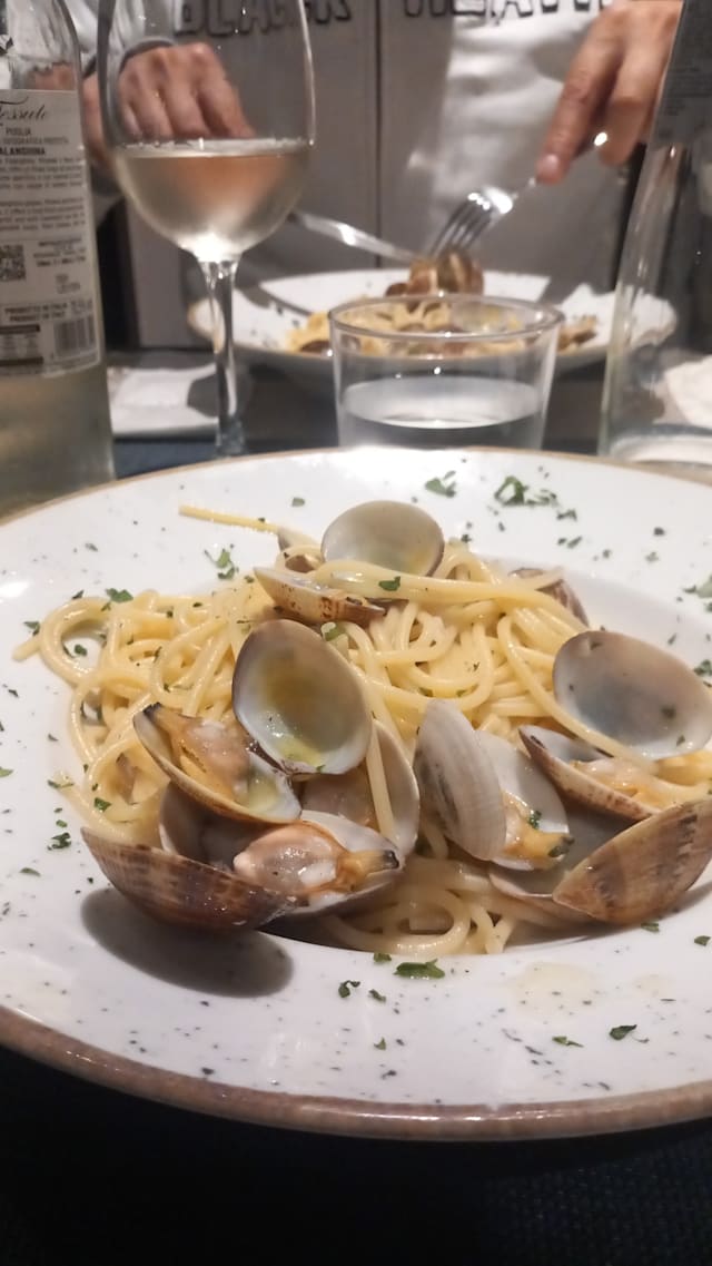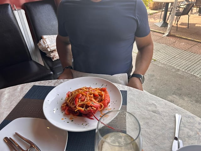 7.5/10Ratings are based on restaurant clientele targeting and my own expectations based on the fork and its reviews. Food was more than ok given it is a bar restaurant in an industrial area. Spaghetti slightly over cooked but good choice of stock clams. A little bit too much oil which is always a bit of an issue with Chinese ran Italian restaurants. Frittura mista above same level restaurant standards. The starters were generous. The table olive oil was good and so was the house wine though you order 3 half litres cause if you order more it would get warm but they make you pay individually for each jar and not as 1.5 litters all together. No issues with the service, maybe too rushed but very nice and welcoming. Cute waitress. The atmosphere is what I was looking for today, unpretentious. The "a la carta" average price is definitely tailor made for "wow" offers like the 50% off, to give you a fairly convenient price after discount but definitely not worth the full price. I knew before i went and in the end I was within what I had expected to pay. I'd go again during a random afternoon walk about or for a quick work lunch with friendly colleagues with same level of expectations and alcohol tolerance. Could offer a shot or coffee at the end when you spend over 30 euro?