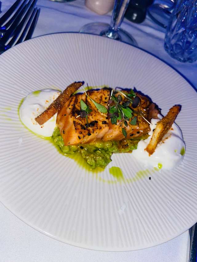 - Asperges vertes, petits pois à la française, menthe et yaourt à la grecque acidulé (garniture servie froide)