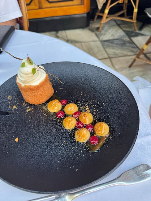 9/10Lovely spot with a delicious sole meunière (which was the reason we chose to dine here). Comfortable with great views of the vibrant neighborhood. Waiter was a bit pushy/deceptive in asking for a tip which left us less than thrilled but I’m sure they are getting quite a few annoying Americans this time of year so we try to be understanding.