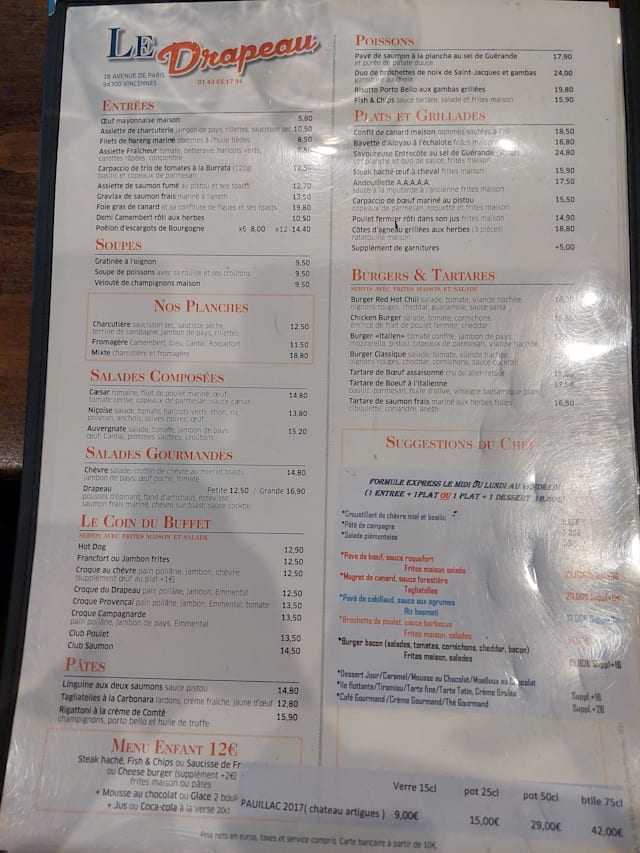 10/10Le Drapeau is such a great place to spend the evening. The choice of food is very good and everything is cooked very well. The seafood risotto is amazing. Excellent service and a lovely atmosphere. A good buzz and a great place to spend time with friends.