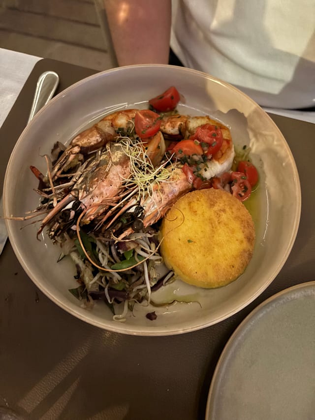 8.5/10Good option with a reasonably priced menu for the “prime” area. The setting is private, secluded and comforting with a small fountain in one corner. A playlist of hits from the last two decades renditioned by covers was mildly amusing. The food was good but not particularly memorable hence the rating. I liked the raviolis in entree. The prawns were of good size and source and well presented.