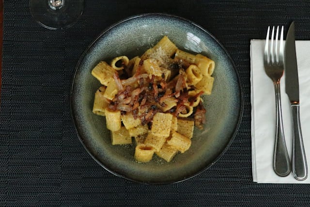 Tagliatelle, sauce tomate, guanciale IGP (joue de porc), pecorino, poivre