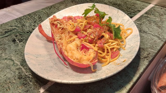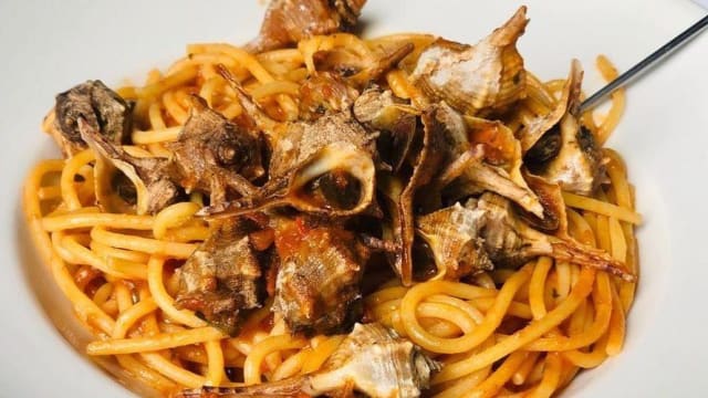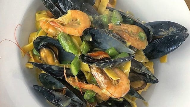 Cozze, vongole, calamaro, scampo, gambero, polpo e salsa di ciliegino