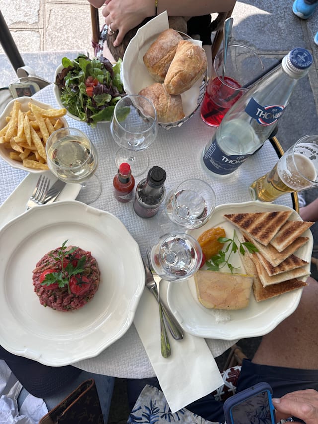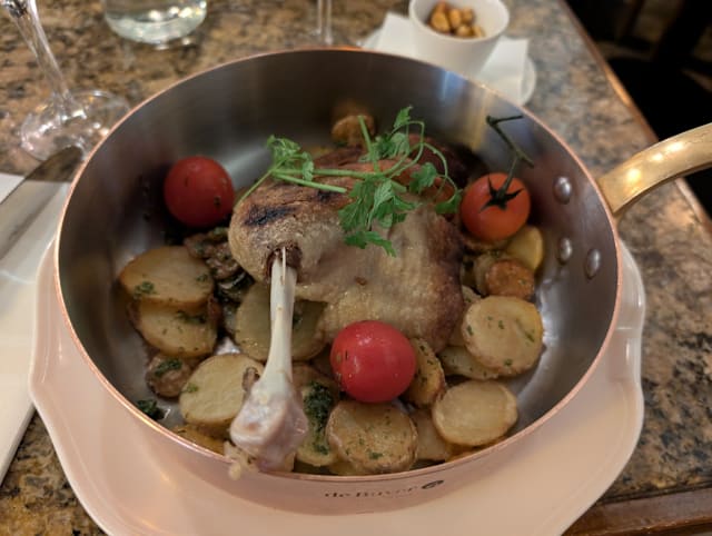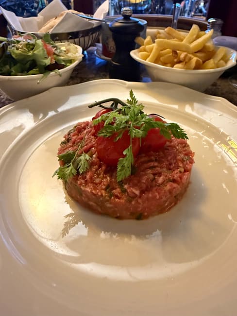 10/10Top location tasty interior and friendly service. Everything I ordered was top notch: the salmon tartar, the duck leg and the ice cream. All accompanied by a delicious Chablis! A bit on the expensive side but worth it.