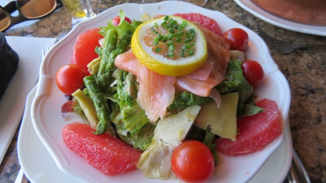 10/10The food was delicious and the service impecable. Perfect spot to enjoy people watching on the terrasse.