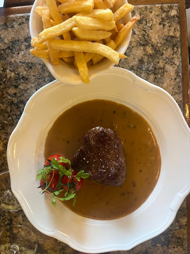 7.5/10We ordered the starter fois-gras at a price of 27 euro and noticed that the portion was only half of what is was in several previous visits... in that case tooo expensive! Main courses were great but overall high priced... The prices for drinks are for sure too high... such a pity because we like the restaurant a lot... but too much for what is provided mainly as result of high prices for drinks.. 10 euro for a bottle of water is fraude !