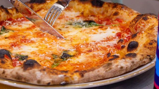 Base di pomodoro san marzano strianese DOP, fiordilatte di agerola, spianata calabra piccante, nduja di spilinga, basilico e grana padano 18 mesi.