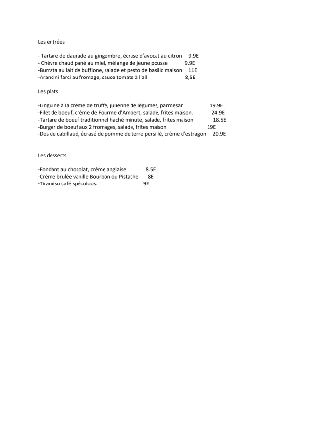 9/10Good restaurant in the heart of Paris. Fast and kind service. Good level of products from the country. Easy and quiet atmosphere.