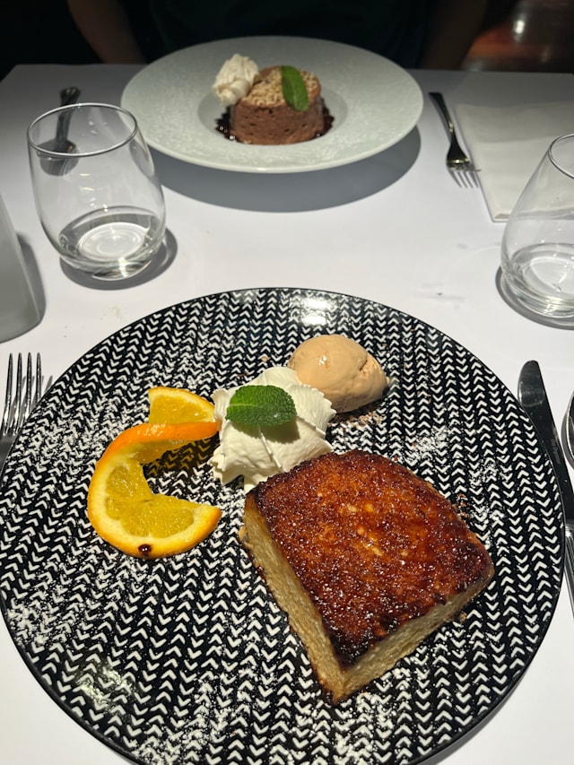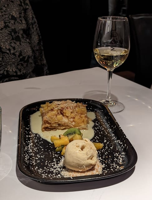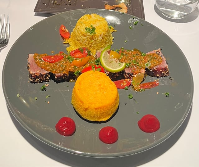 9/10Lovely ambience with nice lighting. Very professional and friendly service. The quality of the food was very good. Modest portion but quite adequate. We both had the fish dishes served with Indian rice and ratouiille which were flavoursome and well presented. We shared the pineapple tart which was served with creme anglais and ice cream. It was also very tasty. Restaurant was quiet but that did not detract from the cosy atmosphere.