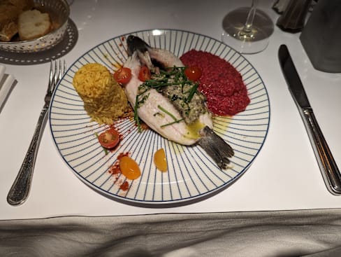 8/10Good New year's Eve with fish dishes, great starter, the seabass with champagne was good but a little bit too creative, dessert with strong flavour, price in line for a dinner on New year's Eve