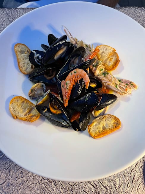 9.5/10We had dinner at Le Galion on a very hot evening in late July. All the tables inside the restaurant were empty and only the external ones were set and ready for customers. I honestly don't remember if there was a problem with the air conditioning system inside or not, but, in any case, we were not offered the indoor alternative. Anyway, the view from the terrace, facing the port of Menton Garavan, is not particularly intriguing, but it is still relaxing, since in the evening, fortunately, there is little movement of people and vehicles. We were warmly received by the manager, an elegant bilingual lady who introduced us to the menu and kicked off our culinary and sensory journey based on excellent, super fresh fish and delicious, ingeniously conceived desserts. The restaurant's level of excellence is also well represented by its wine list... we ate savouring a delicious Chablis Grand Régnard. An experience to be repeated very soon!