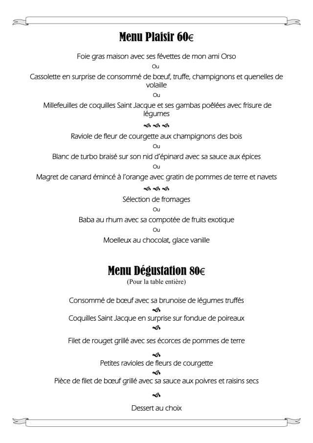 9.5/10the Daniel Desavie bistro provides a wonderful lunchtime menu with three formulas ranging from 20-25eur per head. the quality of the food is excellent and the service is attentive. perfect for a business lunch or special family lunch. the bistro offers a terrasse with plenty of shade or indoors for the colder days. highly recommended and complimentary to the gastronomic restaurant that is also available at the same location.