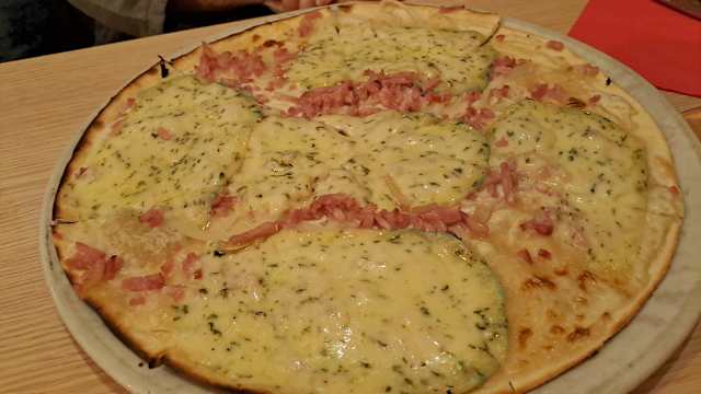 - (fromage de la ferme de ribeauvillé) crème, oignons, lardons, ribeaupierre