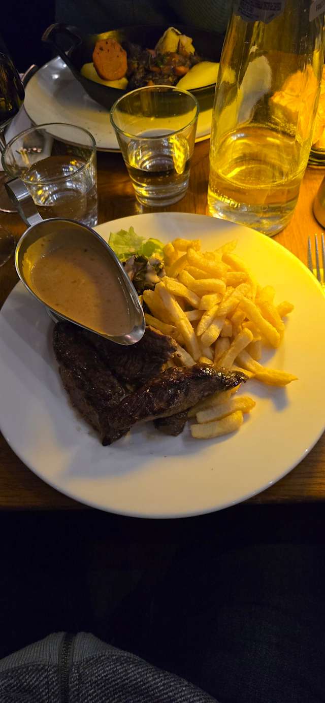 - Jusqu'a 12 ans steak haché frites ou croustillant de poulet frites + une boule de glace ou une crêpe au choix
