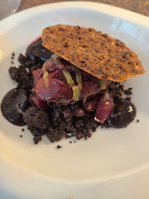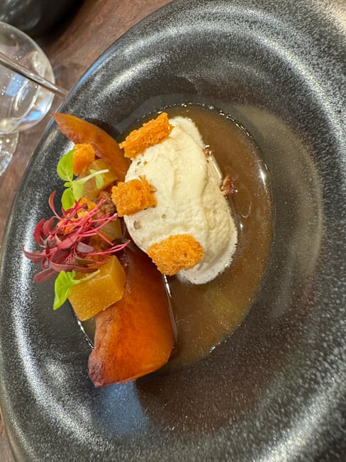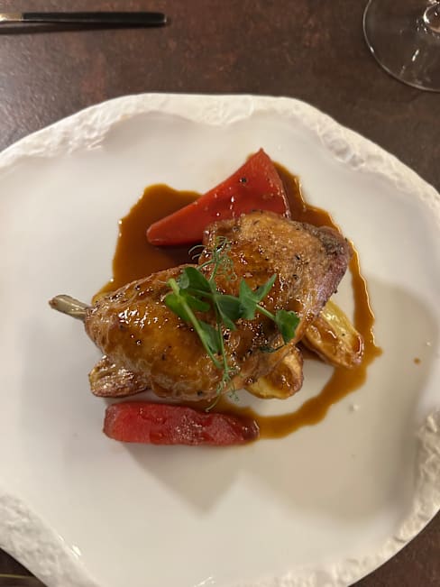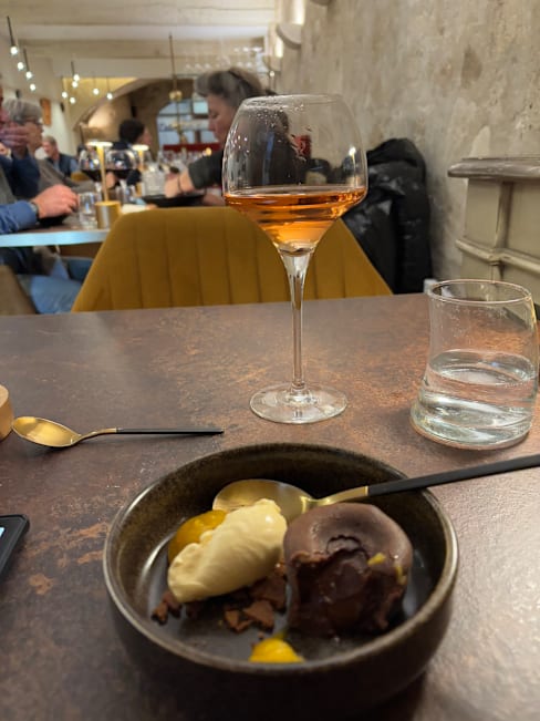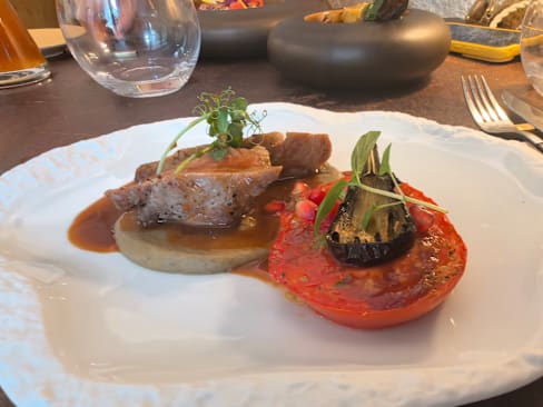 10/10First Michelin restaurant for me, admittedly, so take my opinion with a grain of salt. But wow. I did the entree+plate+desert+wine for €25 and added the cheese plate. Best mushroom soup I've ever had, that pork skin gratin on top was 🔥. Pork tenderloin so tender and juicy I cut it with my fork. Amazing sweet-savory olive jam paired with several excellent cheeses. Simple but well made bread. And that molten chocolate cake with ice cream and strawberry foam...the food was amazing and made me sad that it'll be hard to replicate without the Provencal local ingredients. The service was pristine. I was not dressed up, but they made me feel completely welcome, explained the different courses, and checked on me regularly. I want to come back for the larger menu next time!