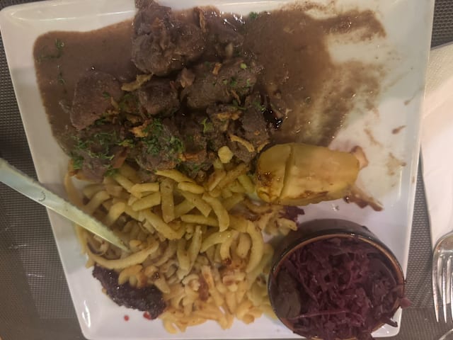 FrenchTraditional cuisineEuropeanBarbecueBurgerGood for a business lunchGood for familiesGood for groupsSeminarTraditionalWith friendsCheap eatsLocally producedVegetarian dishesAmerican ExpressDog-FriendlyWifi