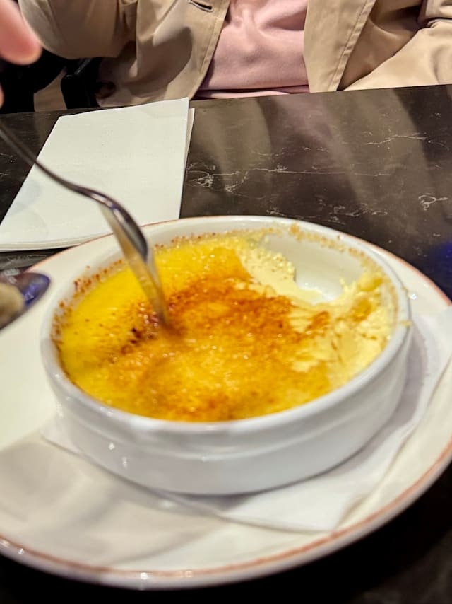 6.5/10I ordered the beef bourguignon and didn't think it tasted that great, had a funky flavor in my opinion. Bread was good, service was terrific, and I sat outside and enjoyed the view.