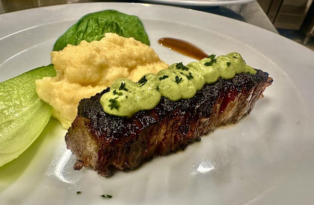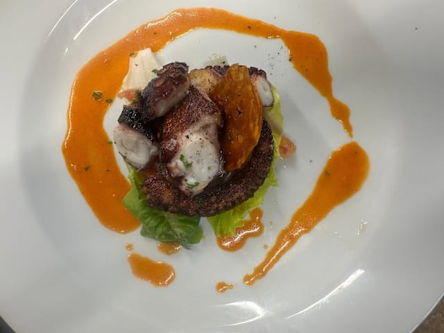 - Ecrasé de patate douce, chips de chorizo, nduja calabrese en sauce