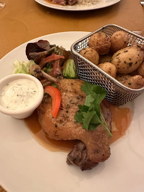 10/10Beautiful atmosphere and great service that allowed us to spend the whole evening eating the wonderful food. We ate here 25 years ago and our return visit was even better. I had the best duck confit EVER and I have had it all over France. Only the bones it fell off remaining. What a great last dinner in France for this year! Thanks for making it so special! See you again next year!