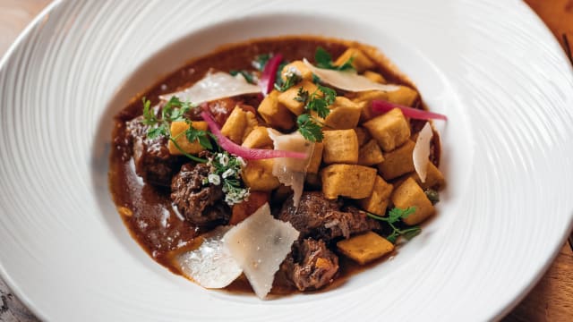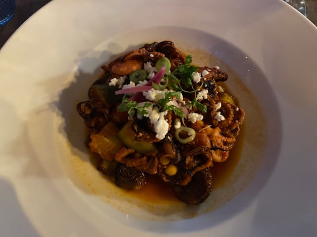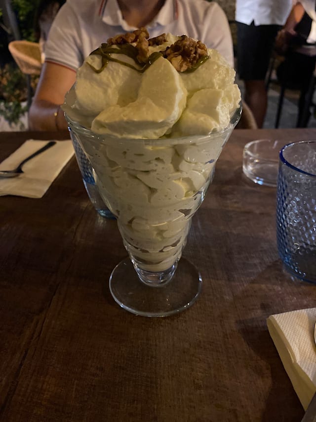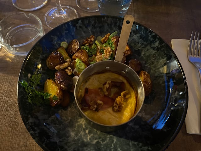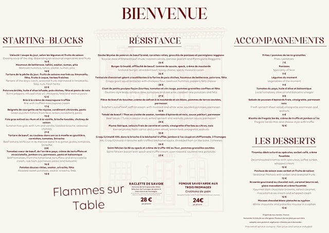 Thank you for your feedback! We’re glad you enjoyed the setting, service, and some of the dishes. We appreciate your suggestions regarding the chips and desserts, and we’ll work on improving those aspects. We hope to have the chance to welcome you again soon for an even better experience. L’équipe du Grimaldi.