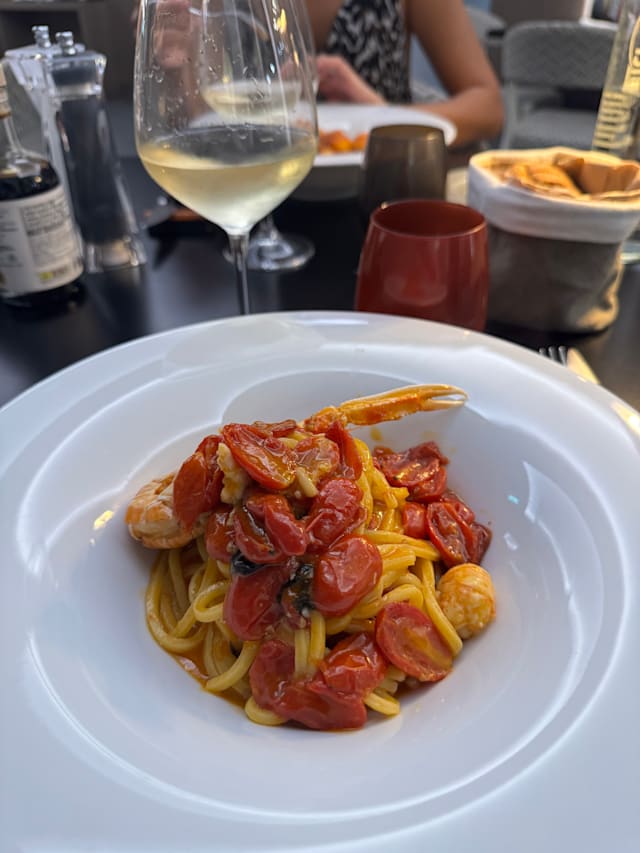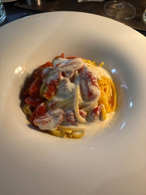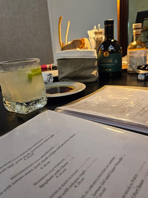 6/10Although the reviews on Google are very encouraging, it was to our disappointment that the food and the ambient did not meet the hype of this place. The sea food items we have ordered, octopus appetizer and risotto with seas urchins, were not cooked properly that one could tell the product are not fresh but frozen. The baccalà appetizer and the rabbit ragù linguine were a fair compensation to the seafood disappointment. Furthermore, the price range and the restaurant ambience do not align. For such prices, one would expect a higher quality of furniture.. all in all, it is a nice place but overhyped and overpriced