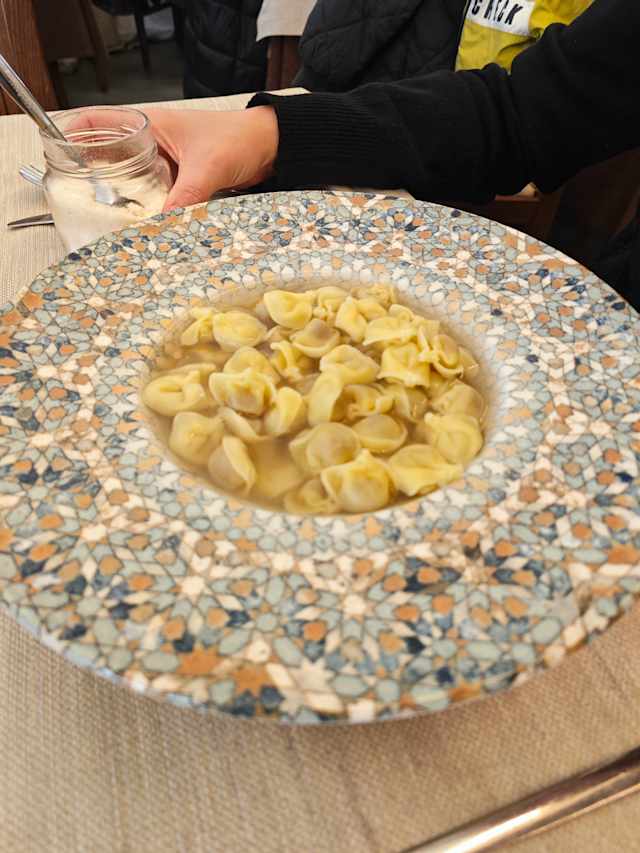Ravioli fatti a mano con ripieno di ricotta di pecora e prosciutto, semplicemete ripassati al burro e tartufo locale
