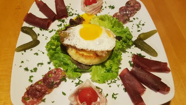 "l’éclat du gruyerien" tomme couronnée d'un ceuf soleil et accents montagnards