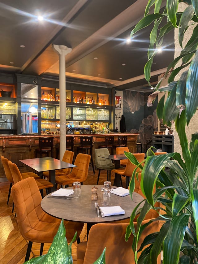 8.5/10Went here to have dinner on my own during a business trip. I had the “plat du jour” which was sea bream with vegetables. It was good, vegetables were crisp and the fish well cooked, the only reason why I am not giving the food 5* is because on the edge the fish was a bit overcooked to my liking. Service was correct, friendly and on time. The place was almost empty but I likes the music and there was banter from the couple of people at the bar. Overall good ecperience