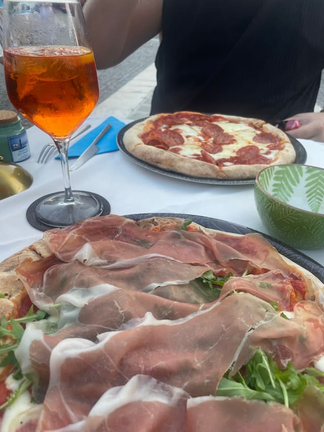 Pelati, mozzarella, prosciutto crudo di parma e rucola