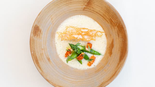 Soupe de roche réduite, sabayon anisé et ail croustillant