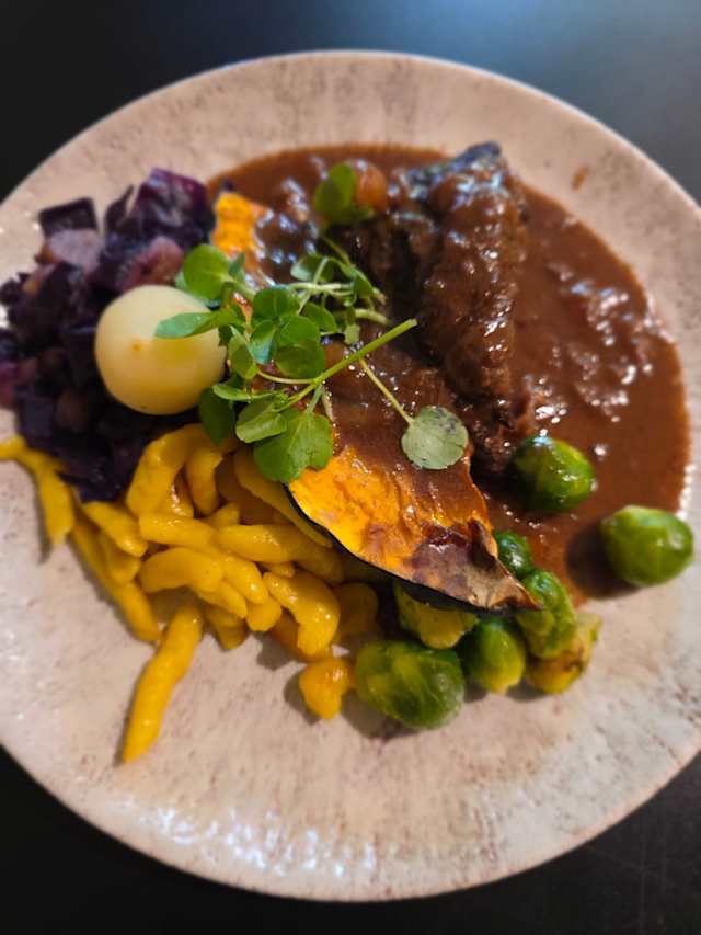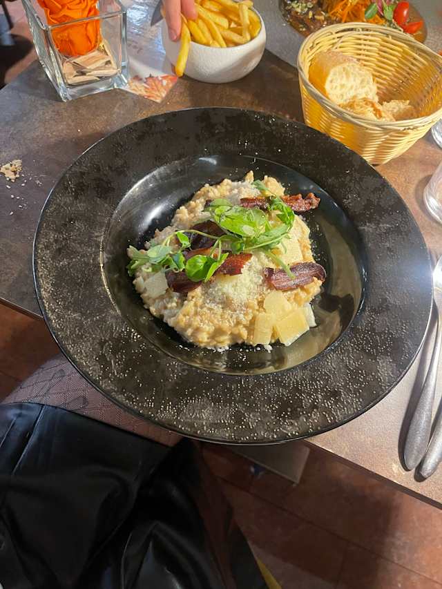 5.5/10With my family we had a reservation for 1:45pm it took us a while to catch the attention of one waiter to be able to place our order. At 2:30 pm no food. I asked to one waiter, very confident guy, of we had to wait for ling still to have our order because we were hungry, the answer was “Yes. We have two large table to serve”. We were expecting the waiter to say “I will check with the kitchen” and his reply astonished us. Also for the dessert menu we had to wait about 15 minutes. Food was ok but the hamburgers were really small, if you are hungry do not order them. We will not come back