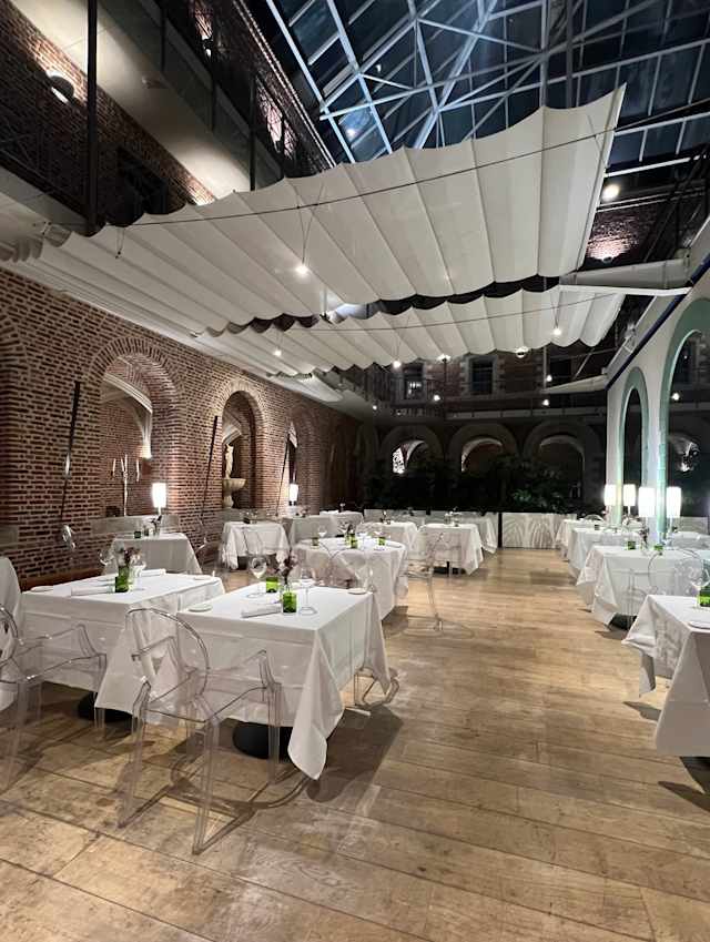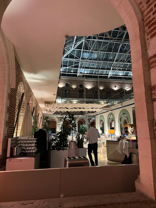 7.5/10The food was good but served cold. The general atmosphere of the restaurant could be improved. The space is a portion of the large cloister. It is windy and cold. It is ok to eat there when staying at the hotel or maybe for very large venues (marriages etc), but I wouldn't go to the restaurant only, it doesn't feel cosy enough. The staff was friendly and professional.