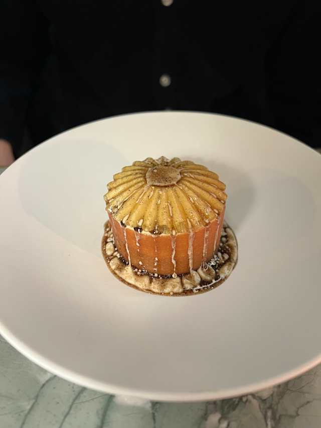 - Velouté, basilic, émulsion de scamorza, miso rouge