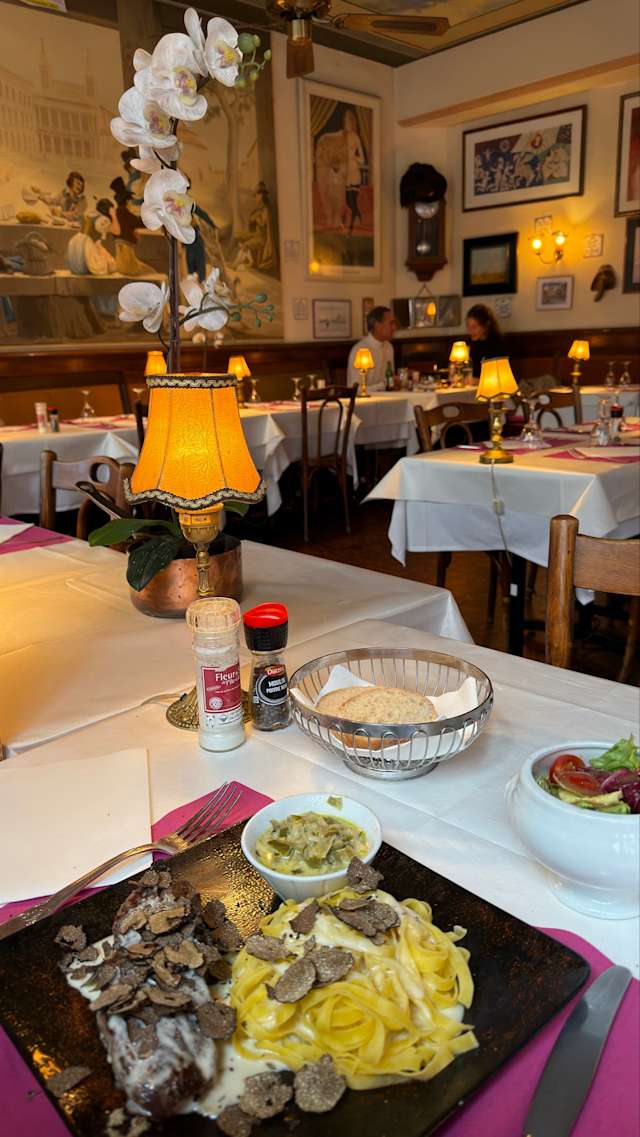 10/10Very good meat and minute paste when ordering the house's special, the one by glass very nice and soft (no headache, yes!) and the service very attentive and polite. The restaurant itself is in classic ambiance, which I really like.